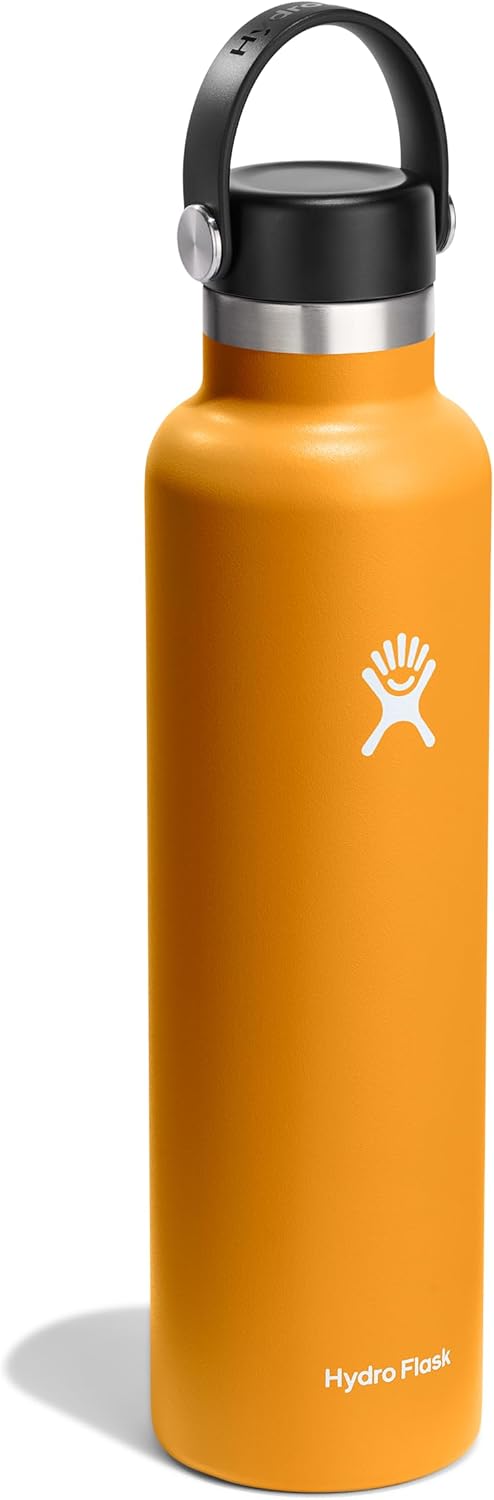 Stay hydrated with the Hydro Flask 24 oz Standard Mouth Bottle. With a comfortable, flexible handle, the reusable water bottle is leakproof with double-wall insulation to keep drinks cold up to 24 hours and hot for up to 12 hours. The insulated bottle easily fits ice cubes and is dishwasher safe. 24 hours cold. 12 hours hot. TempShield? double-wall vacuum insulation. Leakproof when closed. Won’t retain odor or leftover flavor. BPA-Free. Dishwasher safe. Easy to clean by hand or dishwasher. Stays clean and colorful. Not for use on a stove, in a microwave or freezer. Keep hot drinks out of the reach of children. Bottle fits all Standard Mouth caps and lids, including the leakproof Flex Straw Cap.
